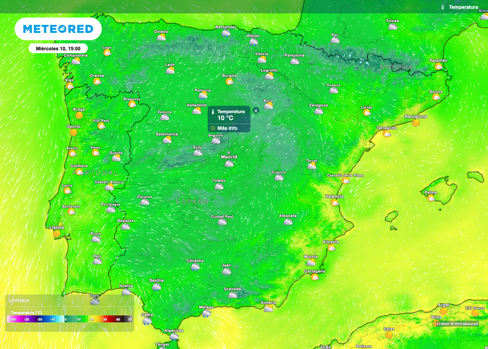 Este escenario será el causante del refrescamiento previsto, que podría suponer un bajón de hasta 6 ºC de cara al mediodía de mañana. El ambiente más frío será notable de norte a sur, desde Andalucía hasta el País Vasco.