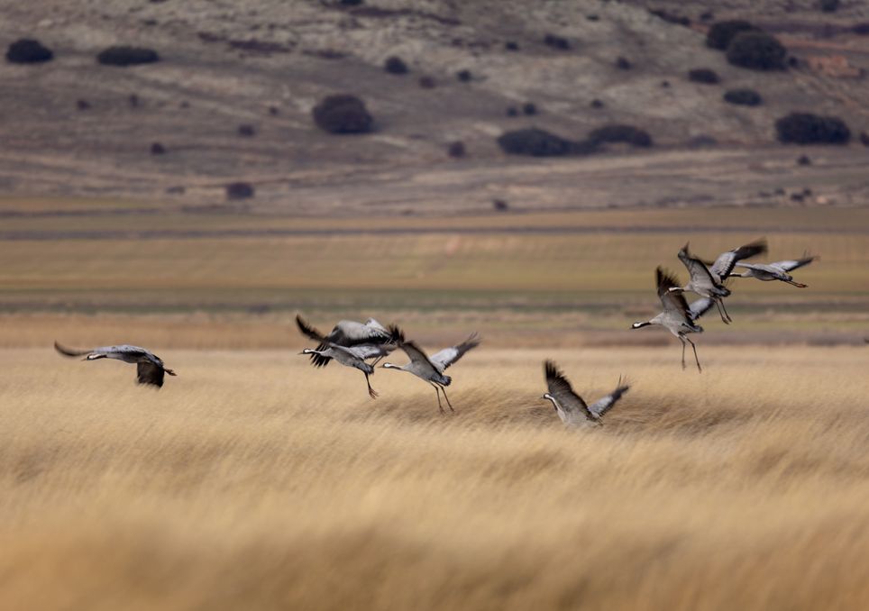 Cada invierno, entre octubre y febrero, puede acoger a más de 50.000 grullas, que encuentran aquí alimento, descanso y refugio antes de continuar su viaje hacia el sur o, ya avanzada la temporada, iniciar el regreso a sus zonas de cría en el norte.