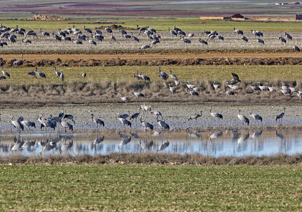 Quien visite Gallocanta en invierno difícilmente olvidará esa experiencia. El trompeteo constante de miles de grullas resonando en el aire; el cielo, al alba, llenándose de siluetas oscuras que despegan entre la niebla; y, al ocaso, las bandadas regresando teñidas por los tonos rojizos del sol poniente.