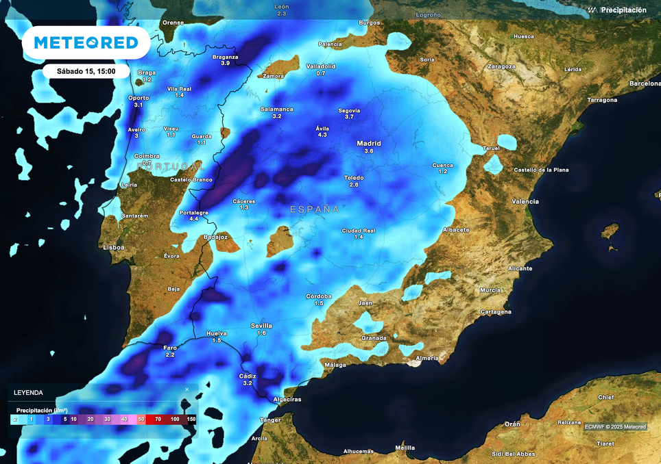 En el caso de Extremadura, donde más lloverá será en la provincia de Cáceres, con registros de 20 a 50 l/m2. Los mayores acumulados se prevén en el Sistema Central extremeño, particularmente en la Sierra de Gredos, con más de 50 l/m2 en 12 horas. En esta zona, el río atmosférico potenciará las lluvias por realce orográfico.