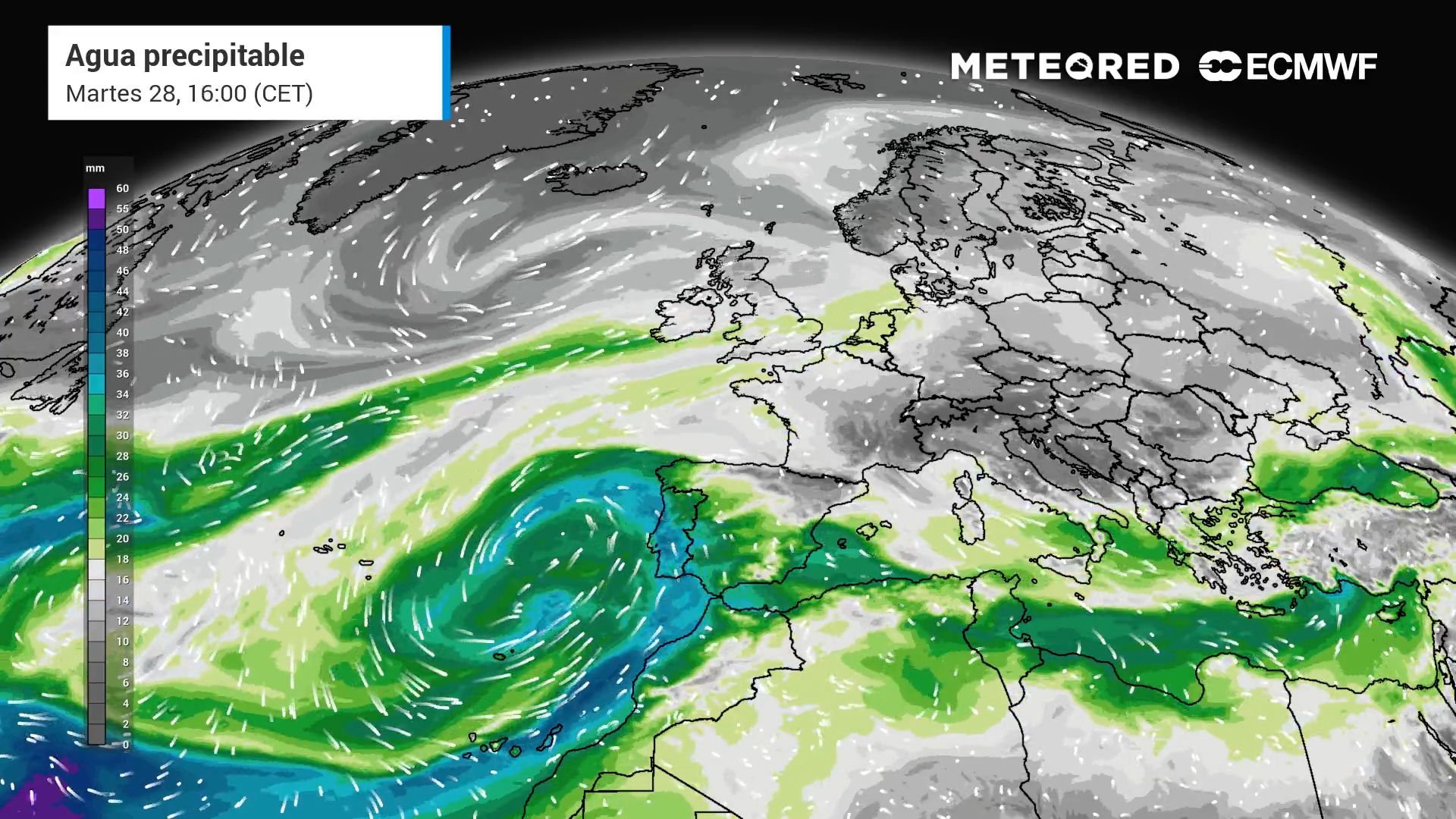 Al impactar con la prominente orografía peninsular, estos vientos pueden descargar grandes cantidades de precipitación. Por ello, no es raro ver acumulados superiores a los 100 l/m2 o más en pocos días en la cara sur de la Sierra de Gredos o Las Rías Baixas en situaciones de NAO negativa.