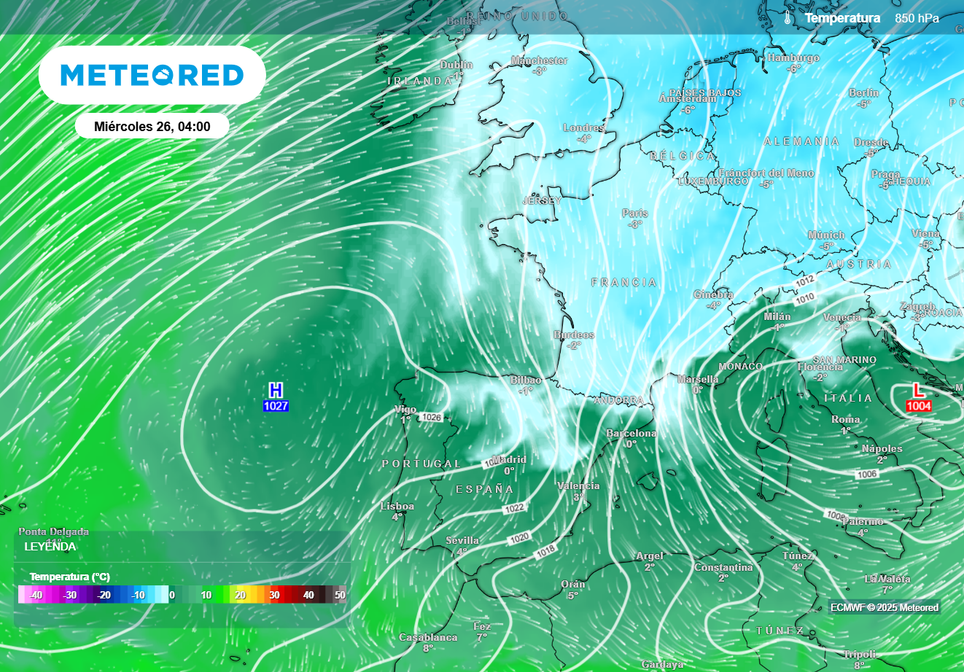 Sobre la Península quedará una situación de altas presiones asociadas al anticiclón de las Azores, pero por poco tiempo. Ya desde el domingo, el noroeste volverá a estar bajo la influencia de una borrasca situada sobre las islas británicas, con vientos de origen atlántico soplando hacia nuestra geografía.