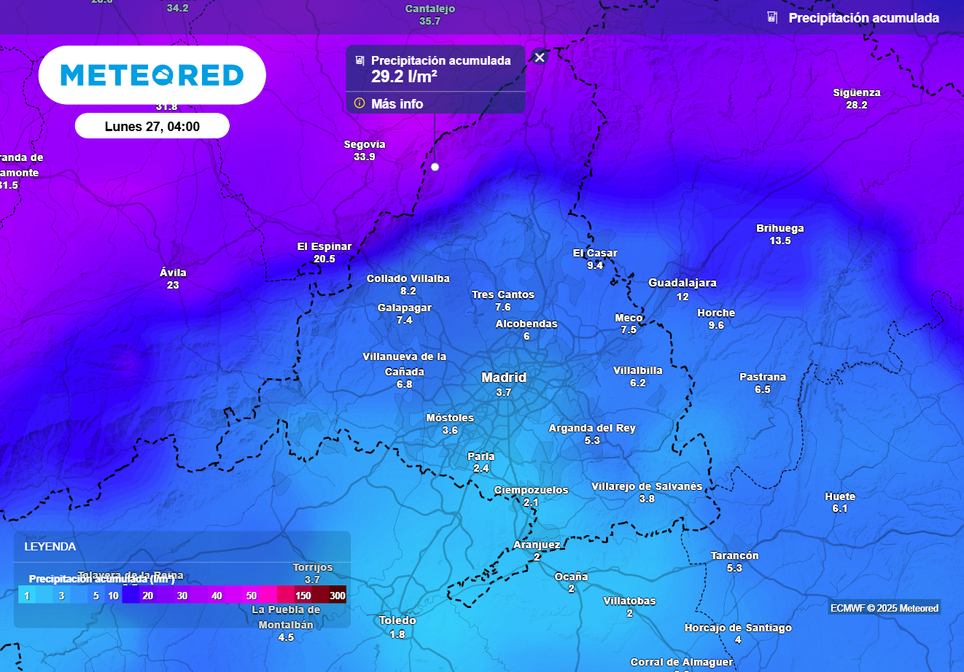 Las últimas actualizaciones de los modelos anticipan acumulados modestos en la mayor parte de la Comunidad de Madrid.