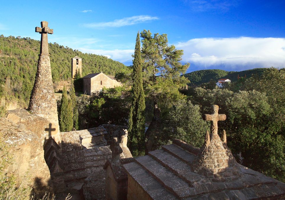 Diseñado por el arquitecto modernista Bernadí Martorell (discípulo de Gaudí) a comienzos del siglo XX, este pequeño camposanto se encuentra excavado parcialmente en la roca y rodeado por encinas y muretes de piedra.