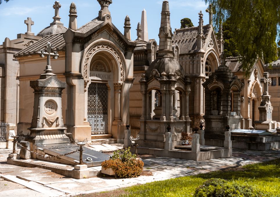 Sus avenidas bordeadas de cipreses conducen a panteones de mármol y hierro forjado que muestran una gran diversidad de estilos, desde el neoclásico hasta el modernista.