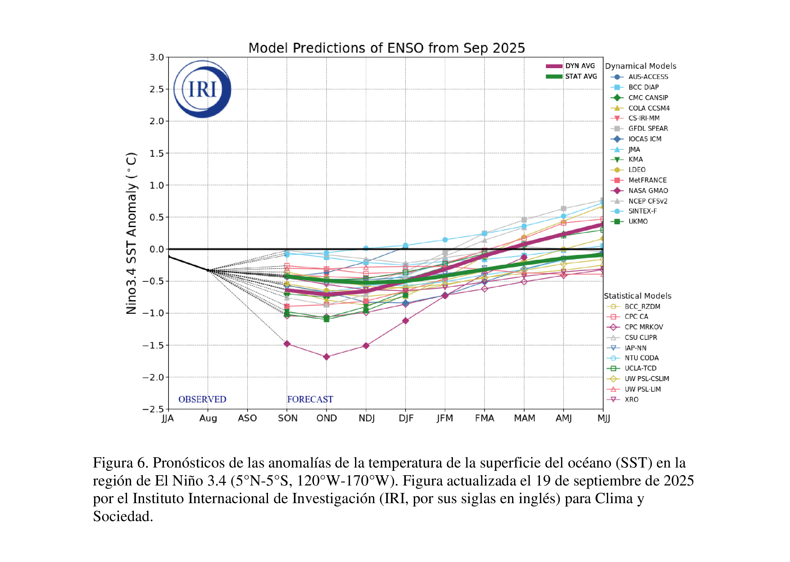Las predicciones del IRI favorecen La Niña hasta el invierno del hemisferio norte 2025-26 [Fig. 6].