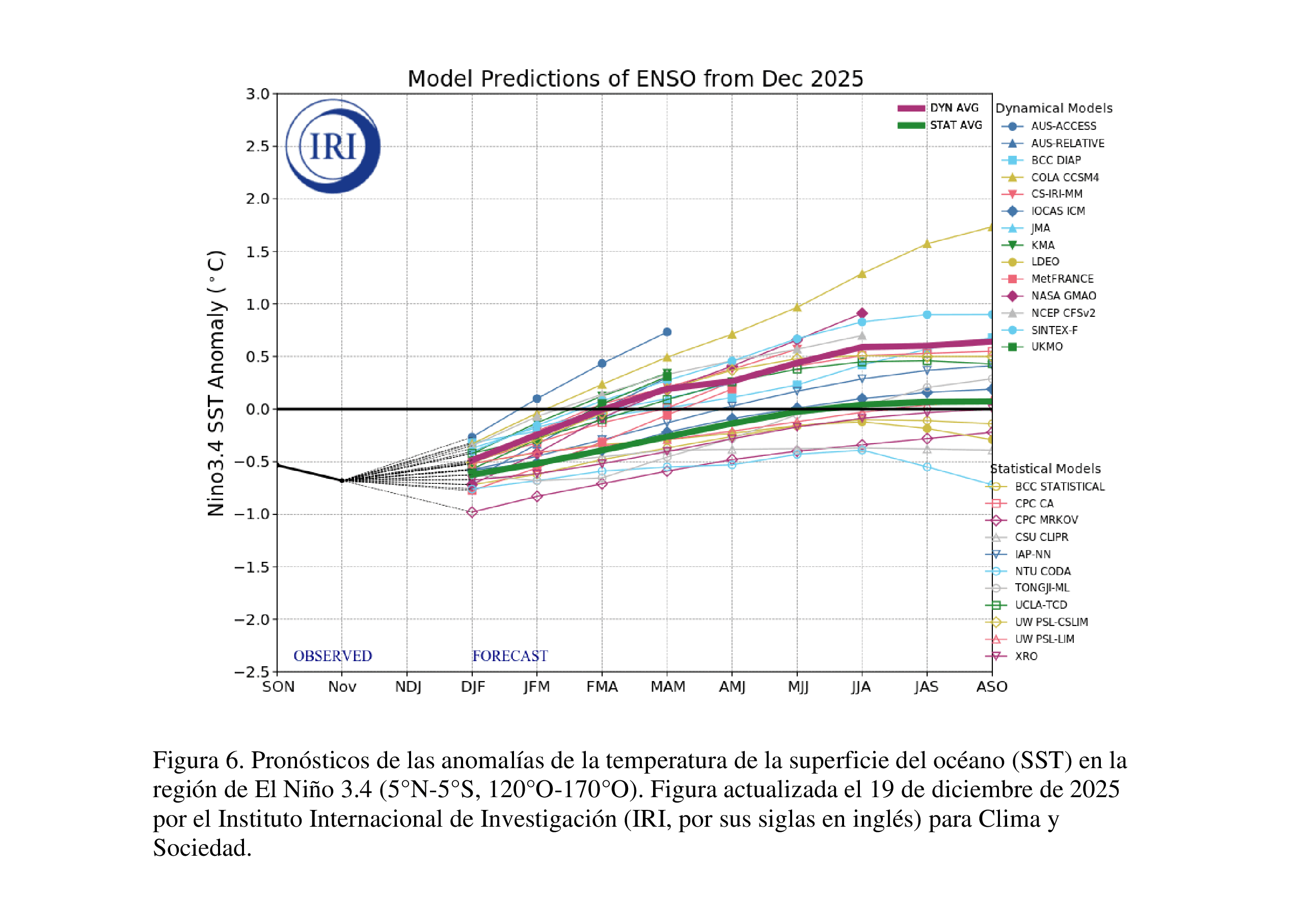 Las predicciones de modelos múltiples del IRI indican que ENSO-neutral surgirá durante enero-marzo (JFM) 2026 [Fig. 6].