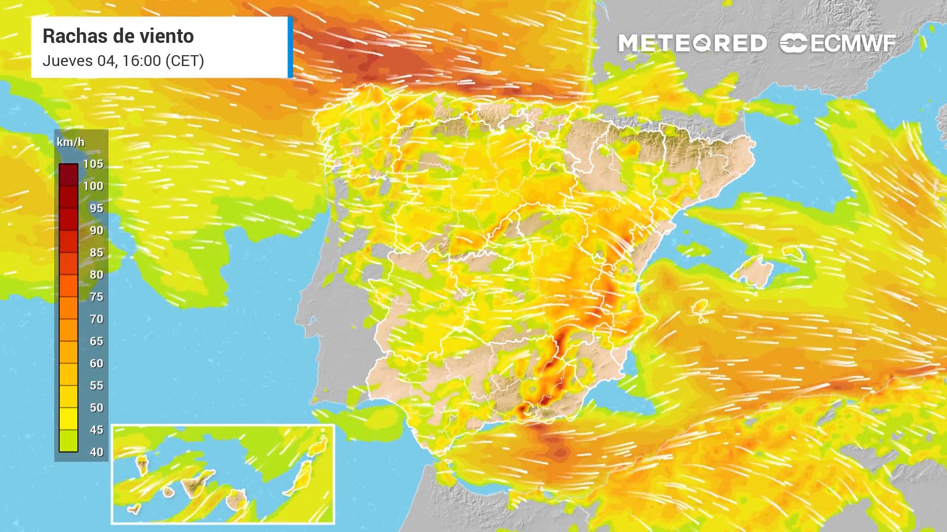 - Cataluña: hasta 80 km/h en el prelitoral sur de Tarragona