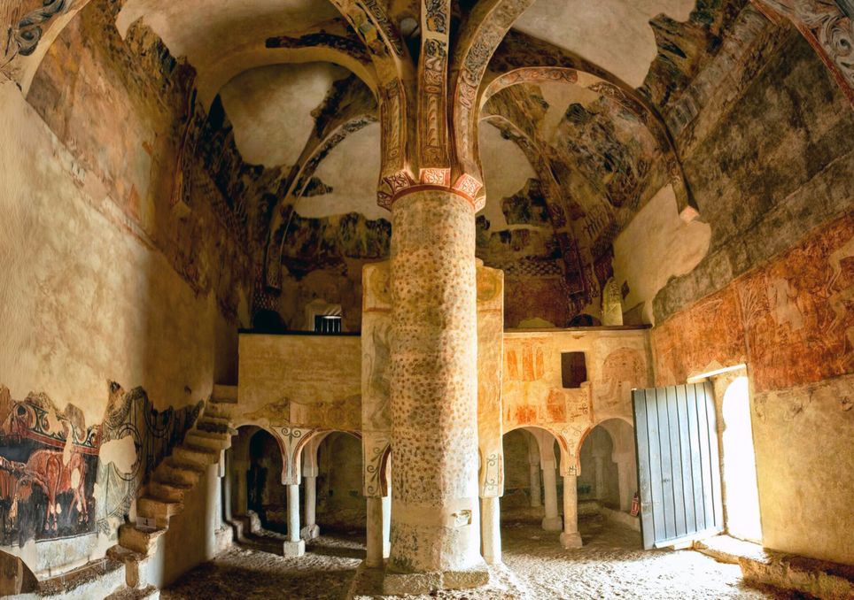 Pero si algo hace excepcional a San Baudelio son sus pinturas murales, que mezclan escenas bíblicas con motivos de caza y animales exóticos.