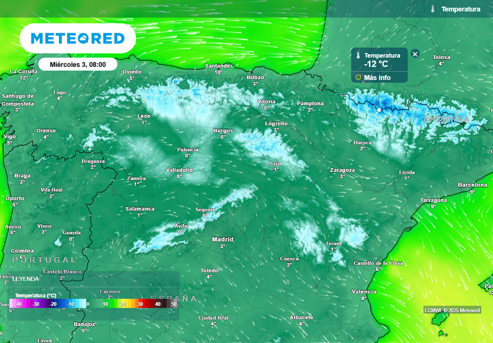 Donde sí encontraremos temperaturas mínimas muy frías va a ser en regiones de alta montaña, debido al efecto congelador de la nieve. En el Pirineo, las temperaturas podrían desplomarse hasta los -16 ºC y en Sierra Nevada se quedarían en -10 ºC.